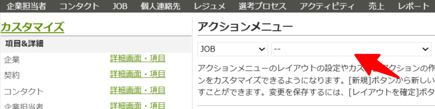 アクションメニューの設定