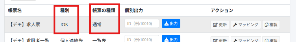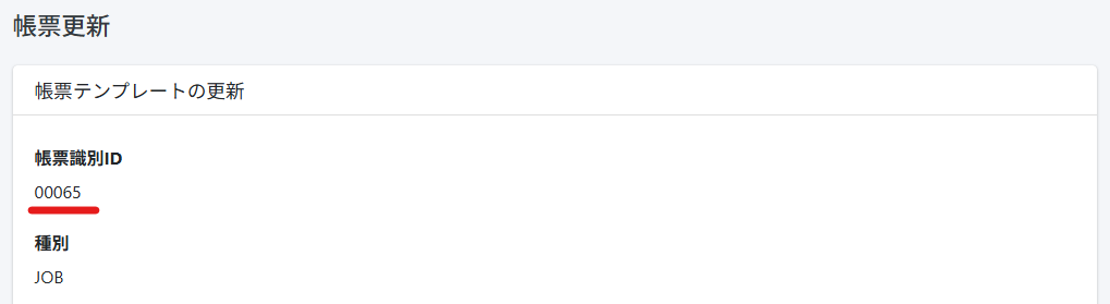 [帳票種別ID]は、「帳票一覧」→「更新」画面から確認することが可能です。