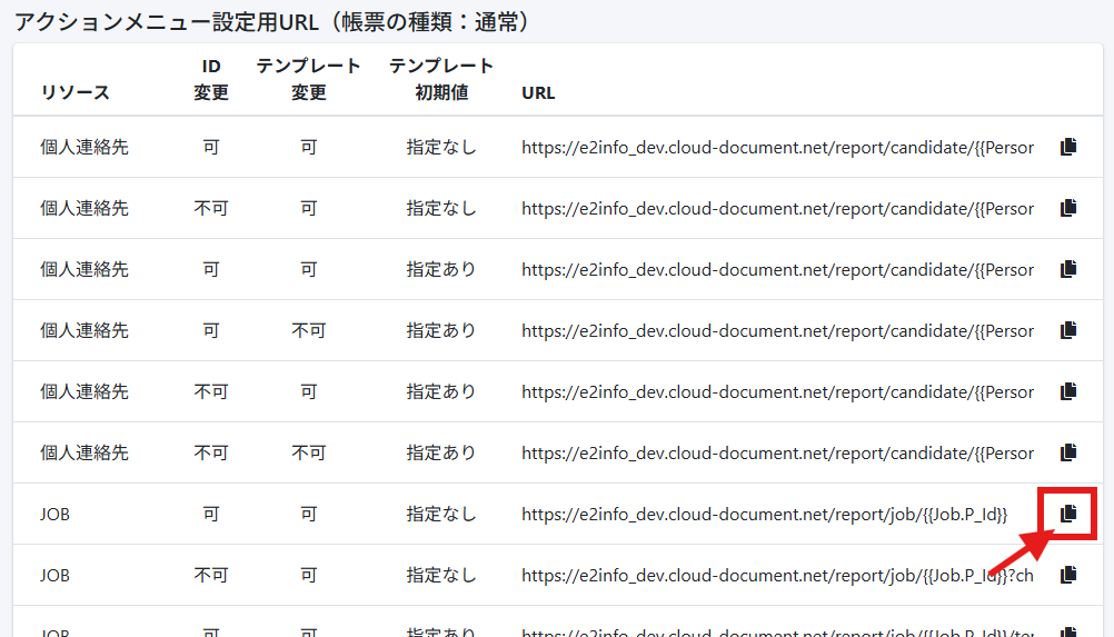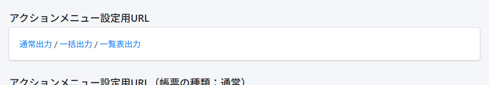 帳票の種類と用途アクションメニュー設定用URL