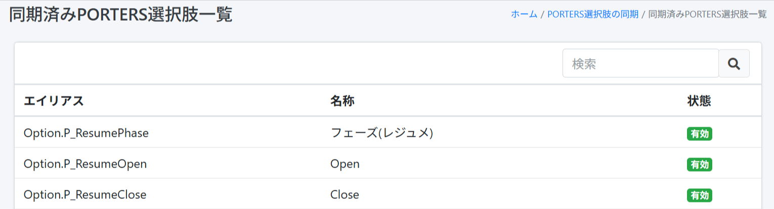 3.同期済み選択肢の件数から、同期済みPORTERS選択肢一覧に遷移