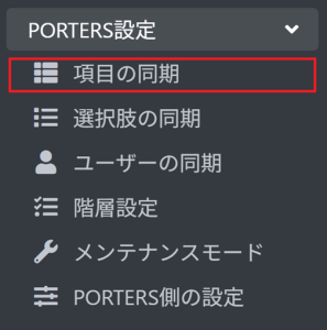 1.左側の「PORTERS設定」から「項目の同期」を選択します。