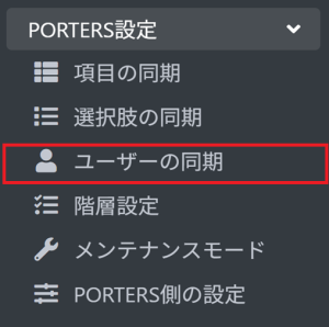 1.左側の「PORTERS設定」から「ユーザーの同期」を選択します。
