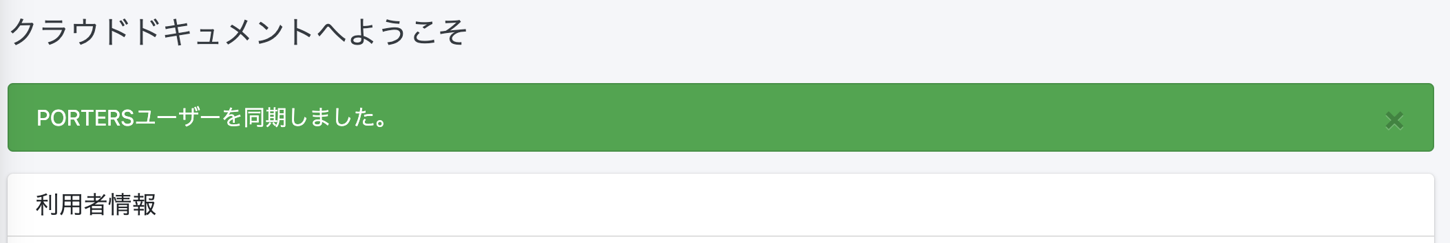 PORTERSユーザーの同期が完了すると管理画面に遷移し、「PORTERSユーザーを同期しました。」とメッセージが表示されます。