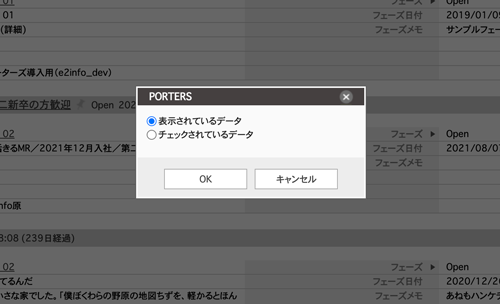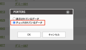 2.表示されているデータ全てまたはチェックを入れたデータを選びます。