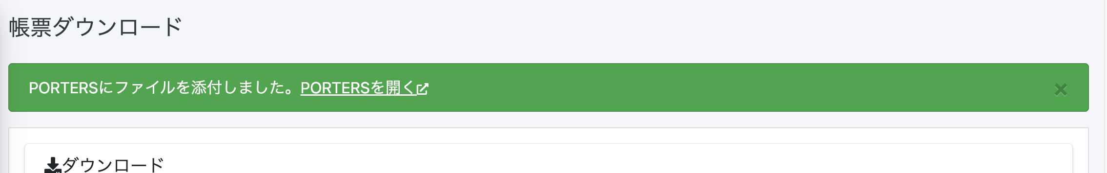 2.上部に「PORTERSにファイルを添付しました。」という緑色の帯が表示されたら「PORTERSを開く」をクリックします。