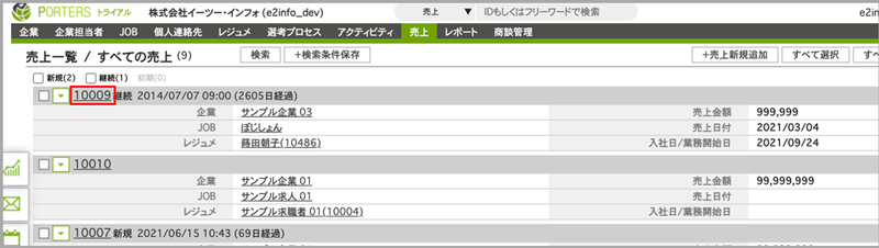 2.クラウドドキュメントを作成したいPORTERSデータのIDをクリックします。