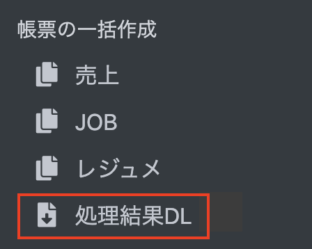 3.左側のメニュー「帳票の一括作成」の中の「処理結果DL」ページに入り、