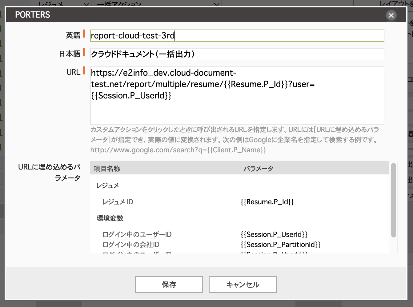 ここでは帳票の登録・更新・削除で取り込んだ出力用の項目を、PORTERSデータに紐づけをおこないます。