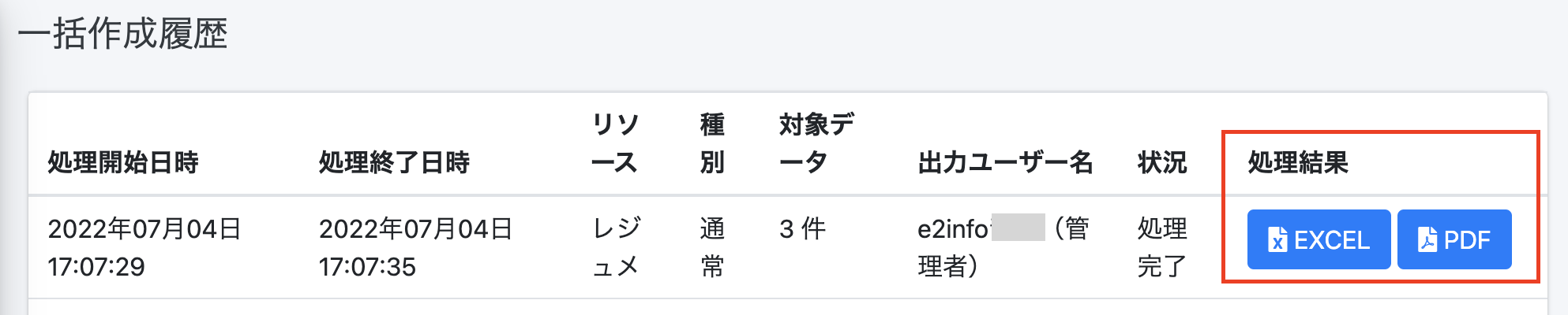 ※処理結果に[ EXCEL ]または[ PDF ]が表示されるまで少々お待ちください。
