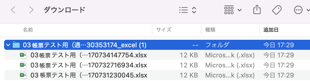 3.PCのダウンロードフォルダにEXCELまたはPDFファイルが保存されます。