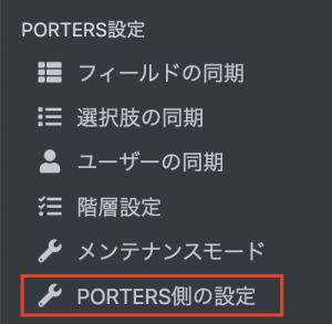 クラウドドキュメント上の左側のメニュー「PORTERS側の設定」に入り、