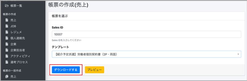 3.テンプレートの作成で登録したテンプレートを選択し、ダウンロードします。