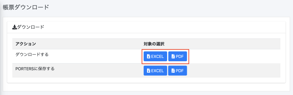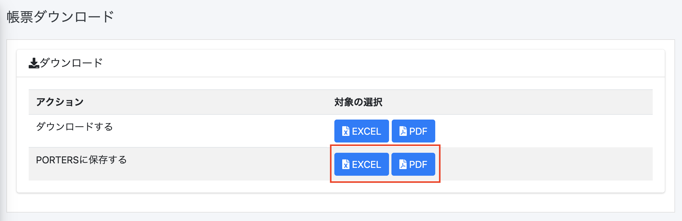 1.「PORTERSに保存する」の右側にある[ EXCEL ]または[ PDF ]を押下します。