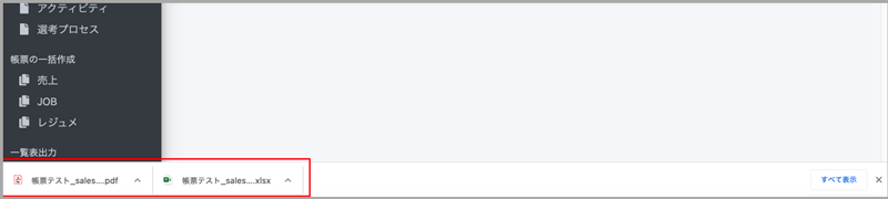 2.画面左下に表示されるブラウザのダウンロードバーをクリックすると、ダウンロードしたEXCELまたはPDFファイルが確認できます。