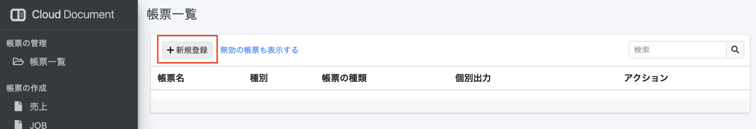 1.「帳票一覧」を選択し、[ +新規登録 ]を押下します。